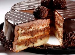 deliciosa torta con un tierno biscocho de vainilla humedo,rellena de chocolate